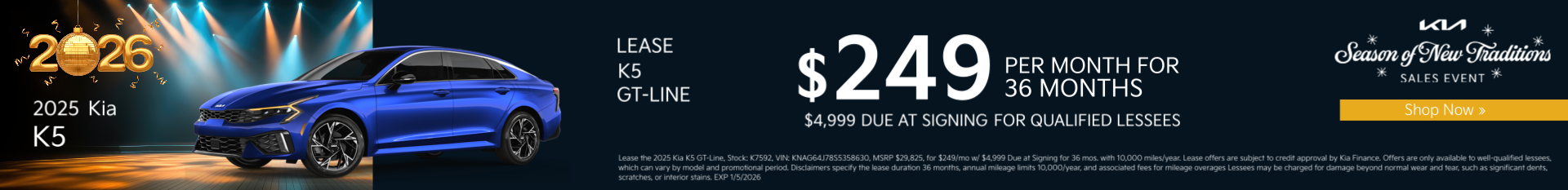 No matter what your automotive needs may be, you will find answers here at Buchanan Kia. This 2026 Kia K5 EX has a beautiful Interstellar Gray exterior with WK interior. This…No matter what your automotive needs may be, you will find answers here at Buchanan Kia. This 2026 Kia K5 EX has a beautiful Interstellar Gray exterior with WK interior. This vehicle has 12 miles has been thoroughly inspected by our factory trained service technicians and has been fully reconditioned for immediate delivery. This vehicle includes:Convenience The cruise control accesses camera, radar and/or GPS satellite data, to automatically determine if it should slow for a curve in the road ahead.Safety and Security The vehicle constantly monitors the roadway in front of the vehicle and identifies and tracks pedestrians on an interior display. If the system determines a likely impact, it will automatically take preventative steps to avoid hitting the pedestrian. With this system the driver's hands must remain on the wheel at all times but can be removed briefly (for a few seconds), otherwise the vehicle will prompt the driver to put their hands back on the wheel. The vehicle is equipped with a camera that displays an image of the area behind the vehicle on an interior display. An active lane departure system alerts the driver of unintended movement of the vehicle out of a designated traffic lane and automatically maintains the vehicle's position within that lane. The vehicle is equipped with a system that senses, and then prepares, the vehicle and/or occupants, for an impending rear collision.Technology and Telematics Wireless Apple CarPlay & Android Auto smart device wireless mirroring For a quick, stress-free car buying experience you've come to the right place! Buchanan KIA offers a complimentary 10 year/ 100,000 mile powertrain warranty on all new vehicles in addition to any factory warranties. Due to heavily discounted market based pricing, vehicles are selling more quickly than our website updates. To verify availability or place a deposit on this vehicle please contact our client care team at 410-876-2251 Our address is 119 Railroad Ave Westminster MD 21157.(more)| Mileage | 12 |